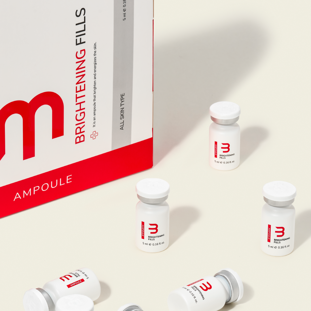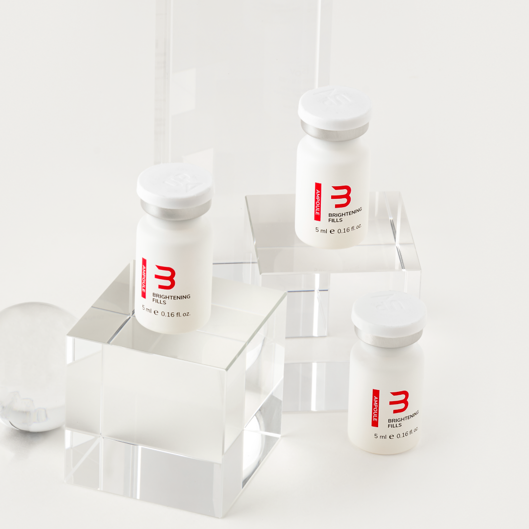 Una ampolla triple relleno de luminosidad que mejora el tono de la piel y el interior y pecas externas con una combinación de glutatión, alfa-visabolol, y ácido tranexámico